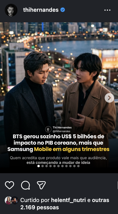 Thi Hernandes — @thihernandes — cresceu do zero a 129 mil seguidores em menos de 18 meses usando exclusivamente conteúdo editorial. Sem dancinha. Sem trend. Sem fórmula de coach.